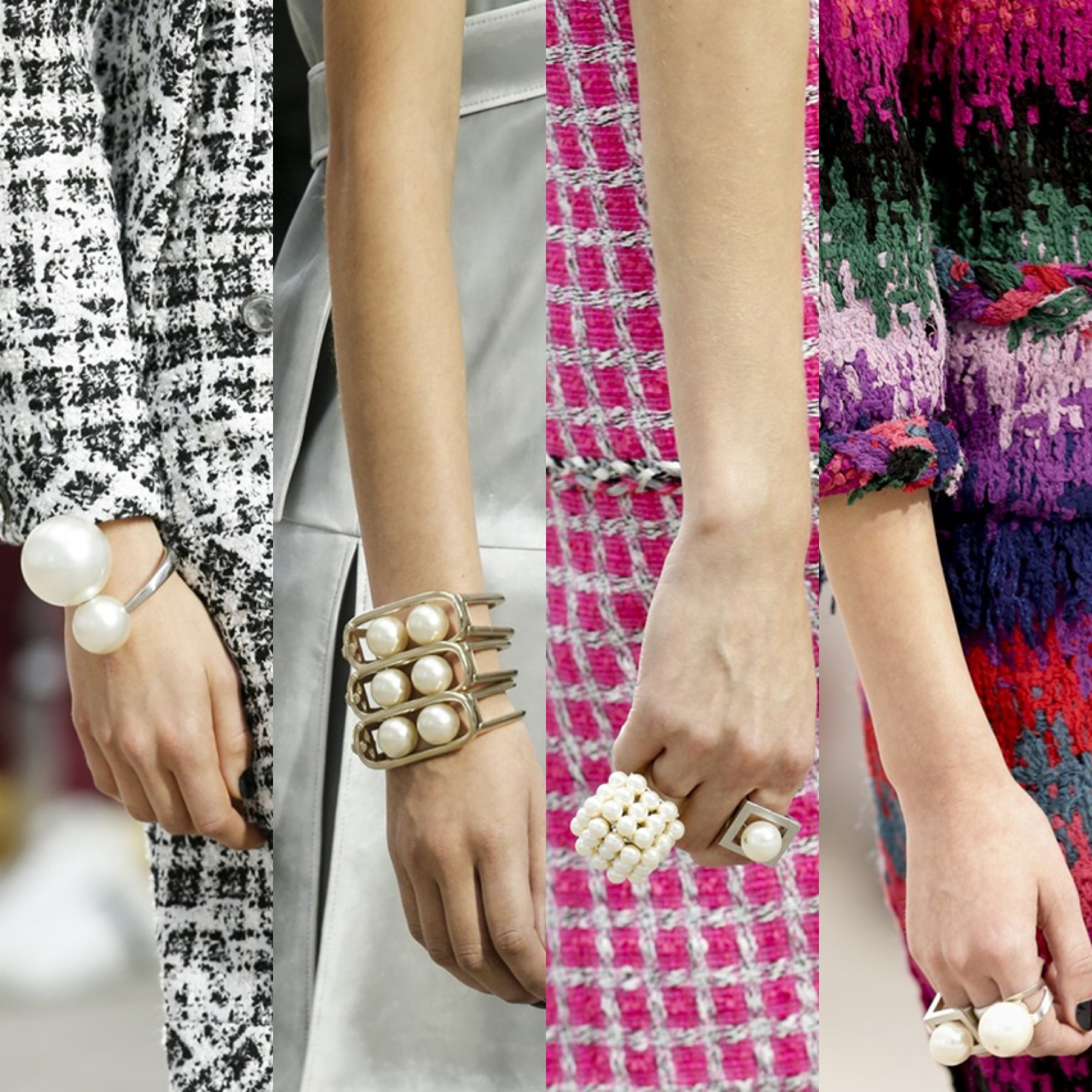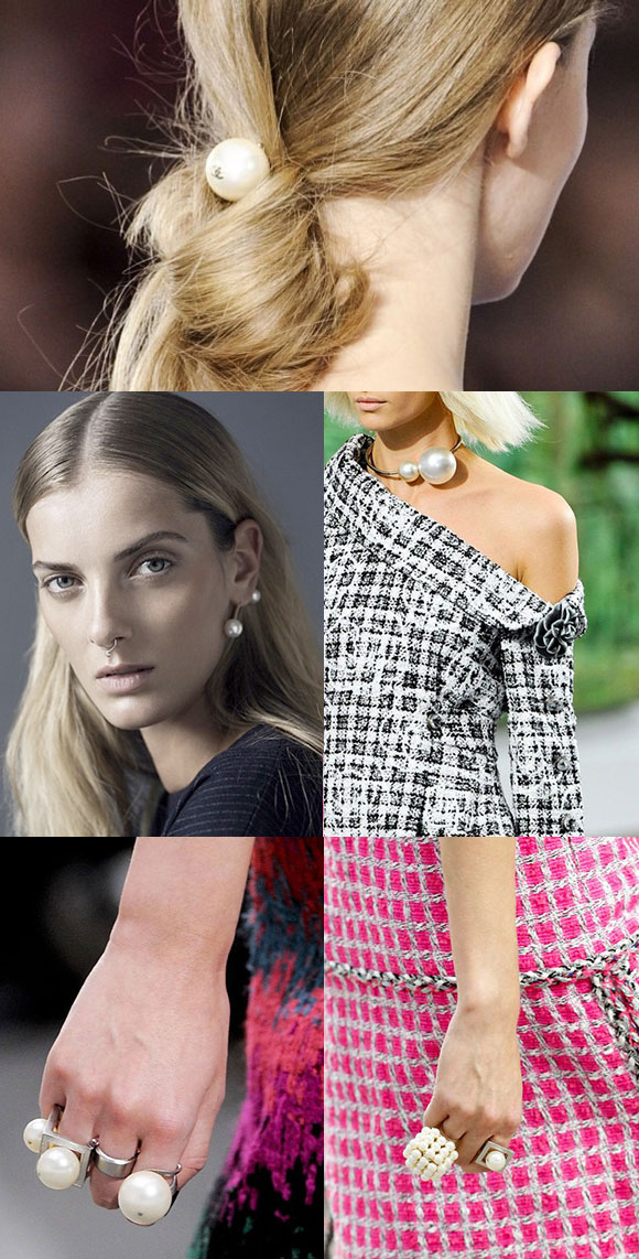 E a Chanel, mais do que qualquer outra marca, apostou sem medo nenhum nas pérolas para sua coleção de Primavera/Verão 2014. De aplicações em bolsas a acessórios chiquérrimos. Aliás, um dos grandes destaques da coleção foram os acessórios com maxi-pérolas!
