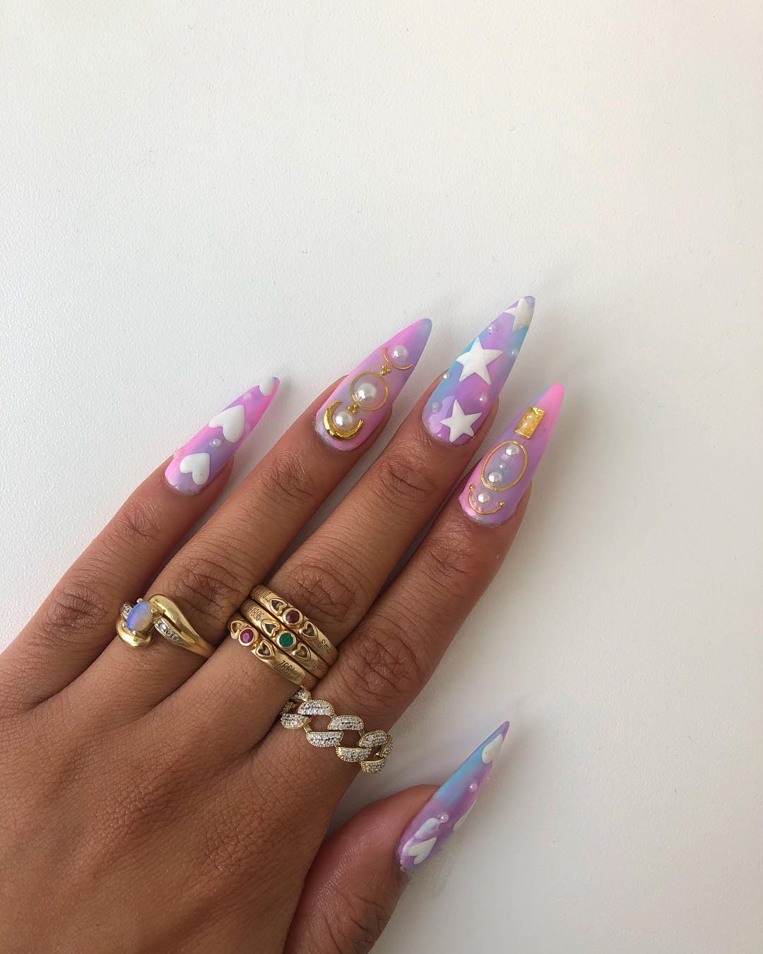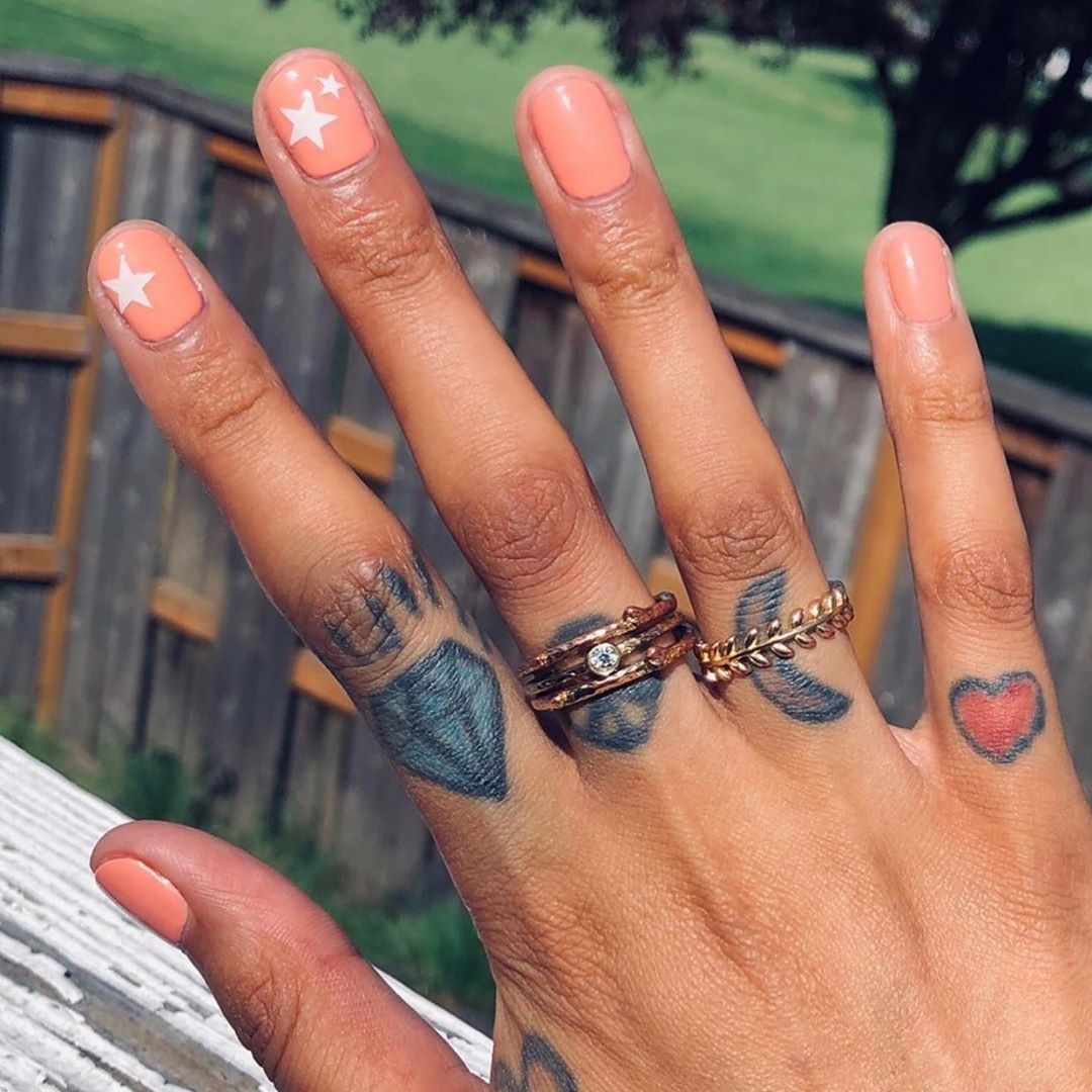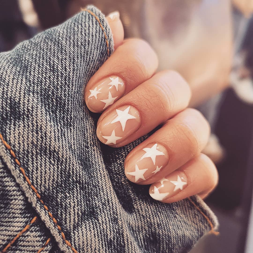Para fazer as Unhas de Estrelas, você pode usar e abusar de adesivos, recortar uma estrela em um papel e criar uma espécie de stencil ou até mesmo treinar seus dotes artísticos e fazer o desenho com um pincel fininho. Inspire-se nas fotos acima!