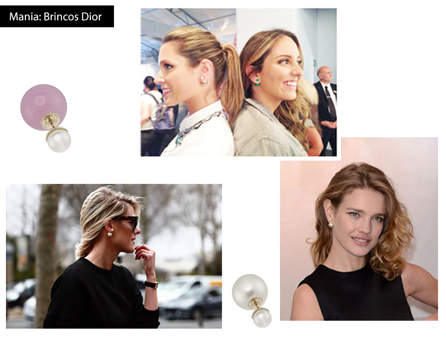 Desde quando fiz as fotos pro editorial da Dior para Vogue desse mês, estou encantada com os brincos da marca – “Mise en Dior”! São pérolas de ouro rosa, branco ou amarelo que vêm em várias cores e têm um quê de tribal. A bolinha menor fica posicionada na orelha, enquanto a maior fica embaixo da orelha! É legal usar só de um lado com um brilhantinho do outro lado ou usar dos dois lados misturando as cores das bolinhas.