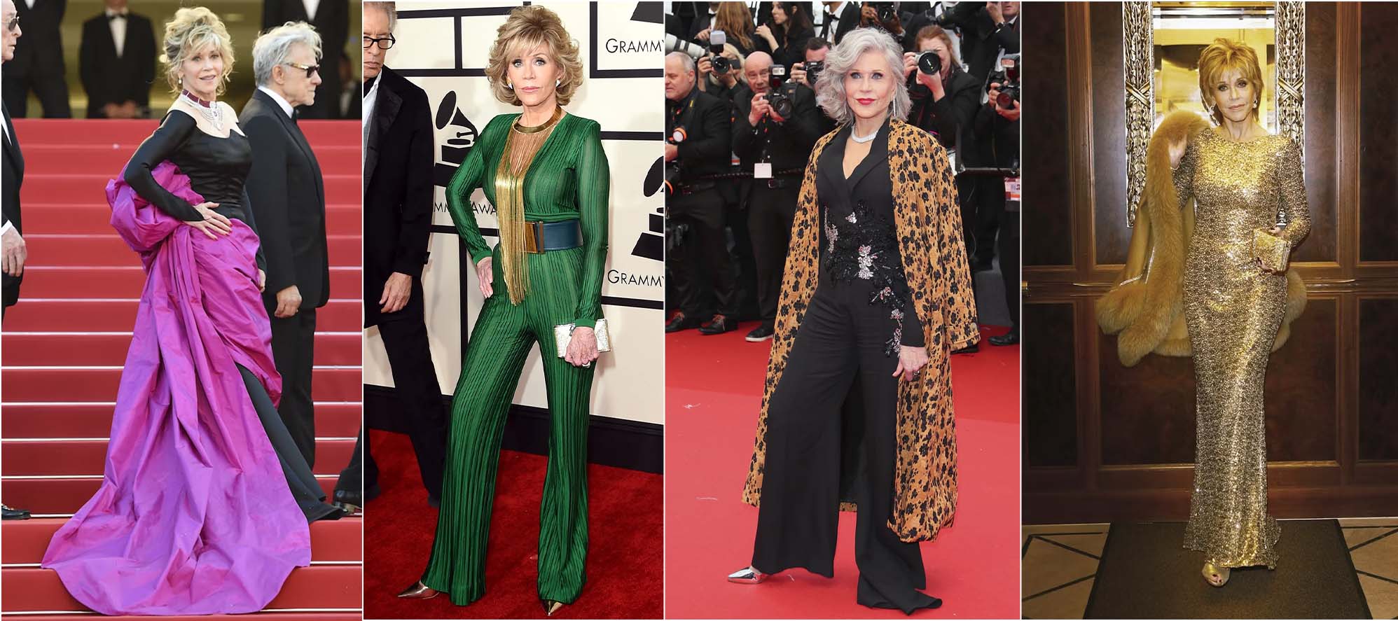 Seu estilo atemporal tem assinaturas muito bem-definidas, como os terninhos e a cintura marcada, mas não se engane: apesar disso, Fonda não cansa de surpreender seu público. A escolha mais simples e segura, definitivamente, não é para ela.