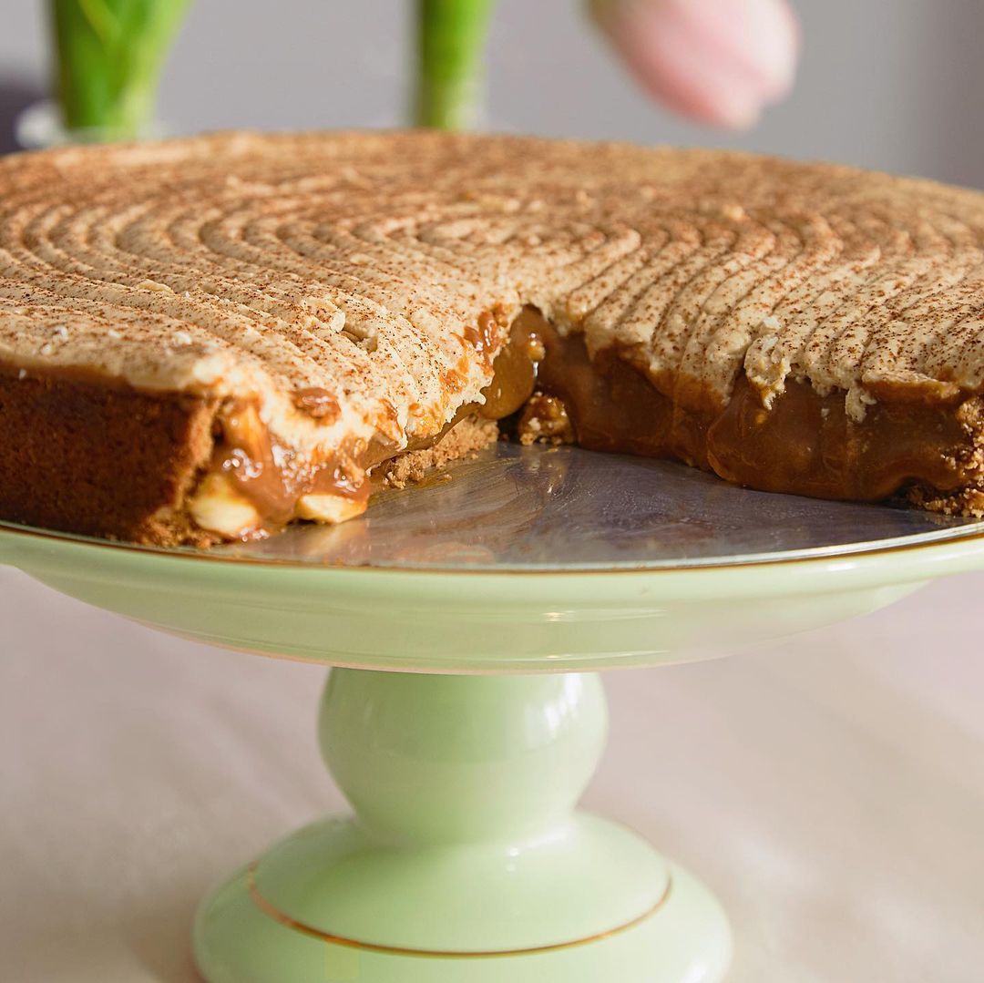 Recheada com camadas de doce de leite, banana, creme diplomata e speculoos, a base ainda é feita com castanha de caju e farinha de coco.