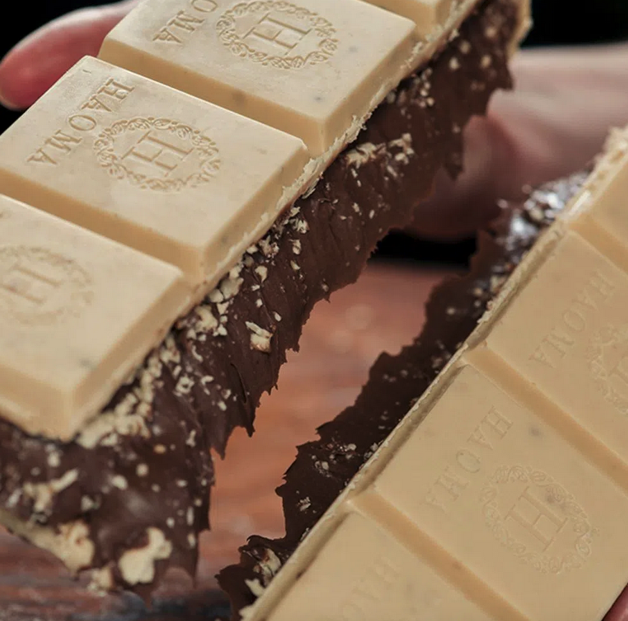 A barra de chocolate branco é recheada com creme de avelã com cacau, colágeno e whey protein. Produzida com ingredientes naturais, sem adição de açúcares, ela também é livre de lactose, glúten, conservantes e adoçantes artificiais.