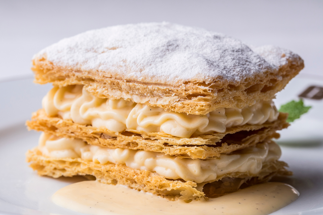 A massa crocante com um delicado creme de baunilha fazem do Mil Folhas uma das sobremesas mais pedidas do Bistrot Parigi. Para Helena, vale ainda pedir um acréscimo de morangos!