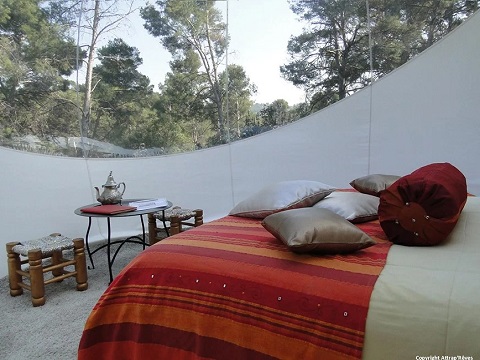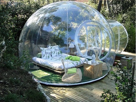 Sem paredes, você pode dormir admirando o céu (e sem nenhum incomodo de insetos, viu?) dentro dessa bolha. Para os claustrofóbicos de plantão, a gente já explica: existe um bombeamento de ar para que se respire tranquilamente lá dentro.