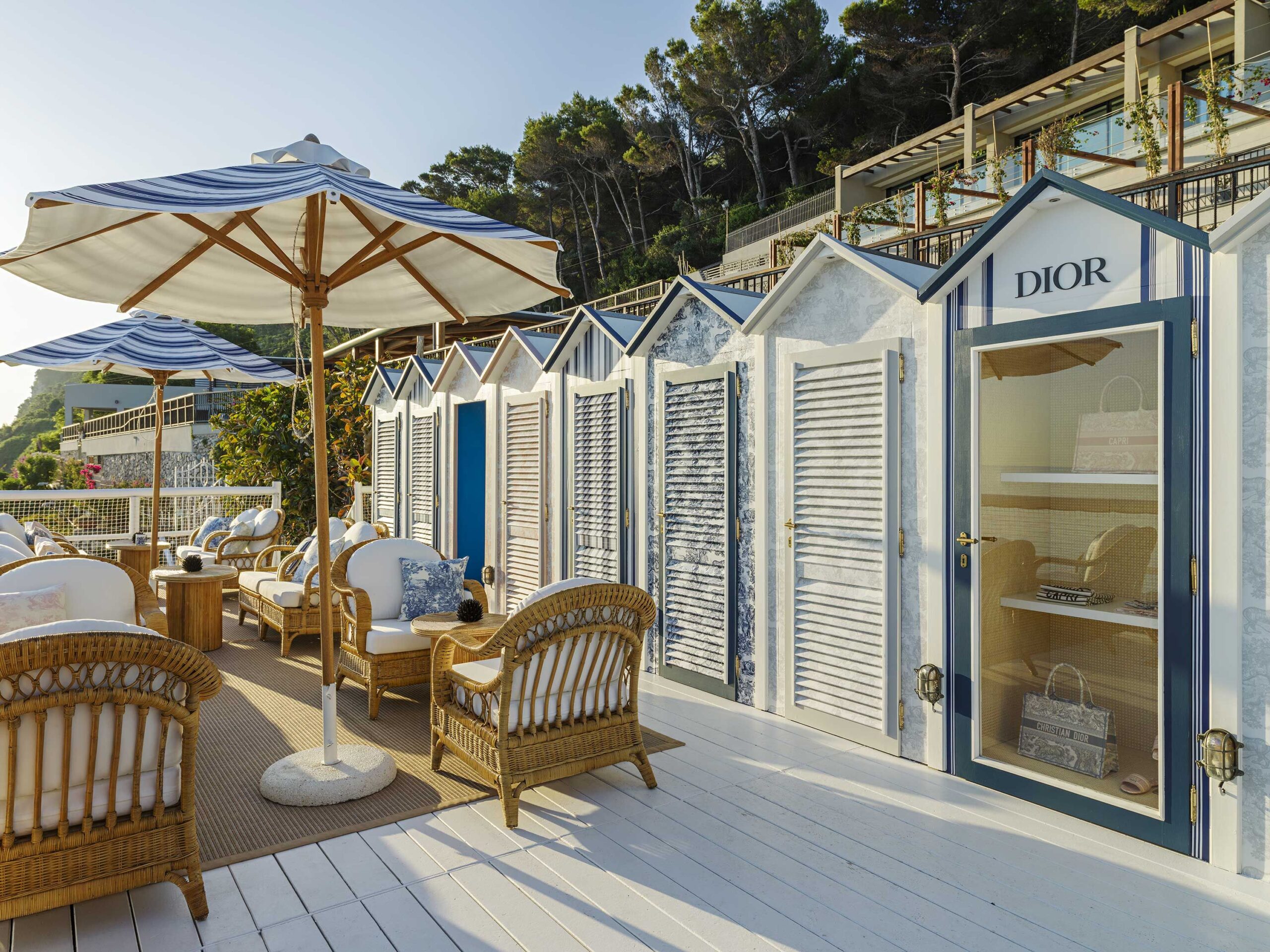 O restaurante Il Riccio é ideal para viver uma experiência diferenciada, com vistas exuberantes, e desfrutar de um almoço animado com vista para o pôr do sol. O espaço ainda conta com uma pop-up deslumbrante da DIOR, o que torna a experiência ainda mais incrível, unindo moda, arte e gastronomia em uma paisagem encantadora.