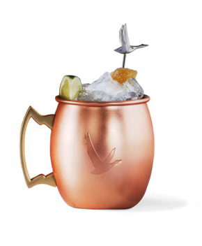 Modo de preparo: Em uma caneca de cobre ou copo baixo com bastante gelo, acrescente a vodka Grey Goose, o sumo de limão e o xarope de gengibre. Complete com água com gás e decore com uma fatia de limão tahiti.