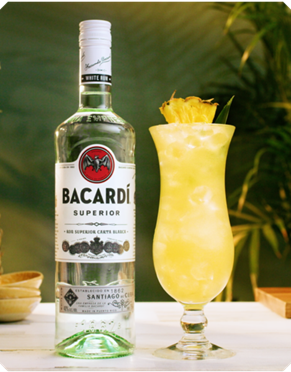 Modo de preparo: Em um copo longo com gelo adicione rum Bacardí Carta Blanca, o sumo de limão tahiti e complete com chá mate adoçado, mexa brevemente. Decore com um ramo de hortelã.