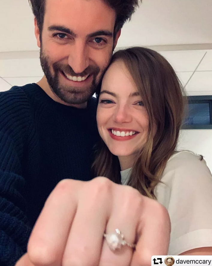 Emma Stone será mamãe – real e oficial! No fim de 2019, a atriz foi pedida em casamento pelo seu, até então, namorado Dave McCary, que postou uma foto com a amada em seu Instagram anunciando o noivado.