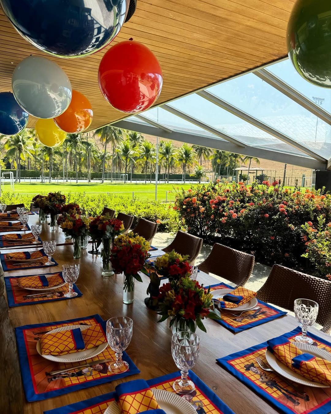 Sempre que possível, priorize espaços ao ar livre, como jardins, quintais ou parques. Esses locais são perfeitos para criar uma atmosfera alegre e acolhedora, permitindo que as crianças corram, brinquem e se divirtam com mais liberdade. Caso o evento aconteça em áreas externas, é importante prever estruturas, como tendas ou sombrinhas, para garantir o conforto dos convidados, protegendo-os do sol ou de eventuais mudanças climáticas.