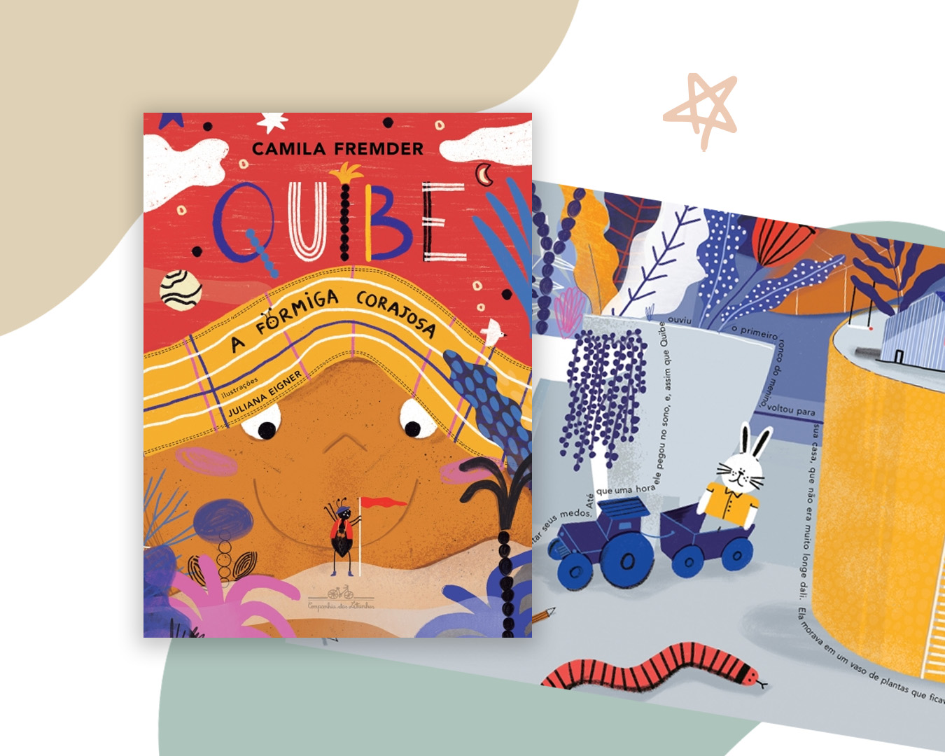 O escuro é um dos muitos medos do nosso protagonista Arthur. Mas tudo muda quando ele conhece Quibe, uma formiga falante que passeava pelo seu braço na hora de dormir. Ao compartilhar suas aventuras com o amigo ― que vão de escapar da boca de um cachorro escorregando pela baba a sobrevoar a cidade com uma abelha ―, a formiga o inspira a ter coragem para enfrentar os mais diversos desafios. Foi a partir de uma história contada pelo próprio filho que Camila Fremder escreveu Quibe, a formiga corajosa, seu primeiro livro infantil, que mostra aos pequenos leitores como algumas coisas ficam bem mais fáceis quando não estamos sozinhos.