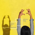 A tonalidade PANTONE 13-0647 Illuminating é um amarelo claro, já o PANTONE 17-5104 Ultimate Gray, um cinza de fundo firme.