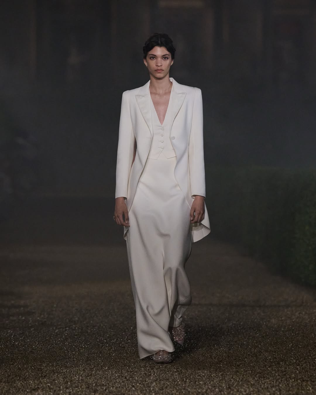 A paleta de cores foi uma homenagem à tradição e à elegância. Convidadas vestidas de branco e convidados de preto criaram uma moldura viva para os looks da coleção, que seguiam os mesmos tons com inserções pontuais de dourado e vermelho. A estética era um equilíbrio entre o clássico e o contemporâneo — e, é claro, impossível de ignorar.
