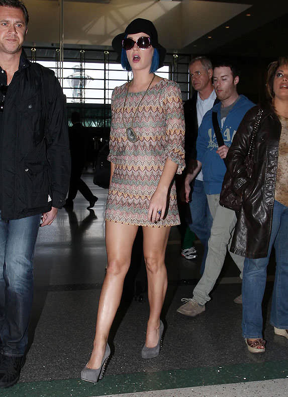 Os vestidos são as peças preferidas de Katy não só no palco, mas também para viajar de avião.