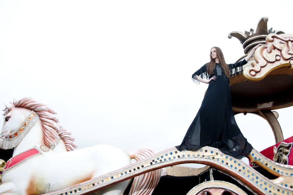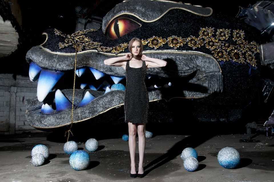 Vestido Daniela Mabe. Colete em franjas de couro Toule.
