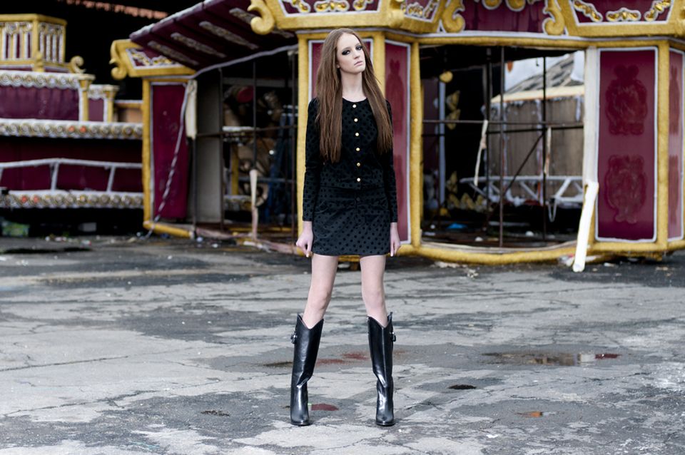 Conjunto de saia e casaco Maria Filó. Botas Capodarte.